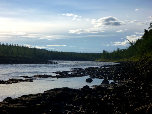 Дневник похода с фотографиями19 июля - вторникИлья: Привет Красноярск! Всё дело в том, что я прилетел в Красноярск на 2 суток раньше Андрея с Олегом ради того, чтобы, во-первых, совершить обзорную экскурсию по городу и окрестностям (Столбы и Дивногорская ГЭС), а также закупиться продуктами. В 11 утра сдал багаж в камеру хранения аэропорта и еду в супермаркет «Метро» на разведку. После всей этой разведки я выдвинулся в заповедник «Столбы» и был у подножия канатной дороги Бобровый Лог около 17 часов. Да, поздновато. Ну ничего. Поднялся, далее начался квест. Дело в том, что высокая канатка, которая поднимает к началу тропы, уже не работала, поэтому, нащупывая путь, практически по интуиции выбирался напролом, примерно через час подсёк тропу и, бодро прошагав ещё 8 километров был на Перьях, то есть Столбах. Народ мне попадался только навстречу, из чего я сделал вывод, что уже-де поздно реально. И правда – там я застал только 2 человек и ещё одну группу молодых девочек, непонятно откуда взявшихся и также непонятно куда исчезнувших. Однако, я –то рассчитывал что со Столбов можно спуститься быстрее до некой дороги, и там уже поймать автобус. Ха! Это оказалось дезинформацией, так что обратно я топал всё те же 8 км. К подъёмнику пришёл уже в темноте. Он, разумеется, не работал, и я решил что спущусь по летней горнолыжной трассе пешком вниз. Это было довольно забавно с учётом скользкой травы. Но так-как сегодня полнолуние, было очень красиво. Итого, первый разминочный день – 23 км. 20 июля - средаИлья: После вчерашней разминки мышцы что-то решили поболеть, и в Дивногорск я не поехал, а продолжил гулять по Красноярску, нашёл рыболовный магазин на площади «Красная площадь, д. 9а» и купил 2 хорошие блесны, коих не хватало в комплекте. Вечером поехал в "Метро" (он оказался не круглосуточный), закупился чем надо и отправился в ночь в аэропорт ждать друзей. 21 июля - четвергВ 4:30 утра прилетел борт из Питера. Встретил ребят, мы по очереди позавтракали в припортовой столовой и поехали в а/п Черемшанка. На досмотре у Олега изъяли из рюкзака 2 литра огненной воды и уксус! Ну со спиртом – то понятно, а вот уксус почему отобрали – загадка. Составили протокол, всё как надо, типа вернётесь через месяц – заберёте обратно (хахаха, как потом оказалось). Прилетели – стоит лёгкий запах гари – вокруг лесные пожары, не рядом, на островах, но они есть. 2 месяца не было дождей, говорят. Докупили продукты, встретились с забросчиком, долго собирались они, но около часа ночь стартанули флотилией из 5 моторок. 22 июля - пятницаСегодня был первый ходовой день, т.е. день, посвящённый именно проводке вверх по Эндэ, а не бесконечным заброскам. Привезли нас на Эндэ в 7 утра. Всю ночь плыли с Шерешем. Виктор вёз каких-то то-ли друзей, то ли нет - не поймёшь кто это, но они раньше явно встречались. От Светлогорска ушло в сумме 5 лодок с туристами. Была группа с Украины с Днепропетровска, которая шла в пеший поход в район Бельдунчаны. Шереш нас не встретил, т.к. его срочно вызвали по спутнику "спасать" пешеходников из Москвы с Дюпкуна, т.к. у них буквально земля под ногами горела. Вместо него приехал его помощник, Володя, которого он, похоже, тренирует. Доехали до Светлогорска - там все люди загорелые до черноты. Пока летели, познакомились с хохлами. Они предложили купить их газ, т.к. у них был лишний. В посёлке продуктовые мага